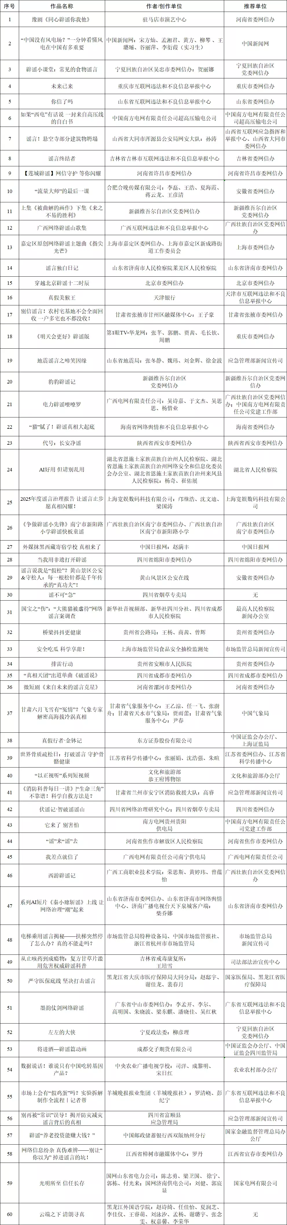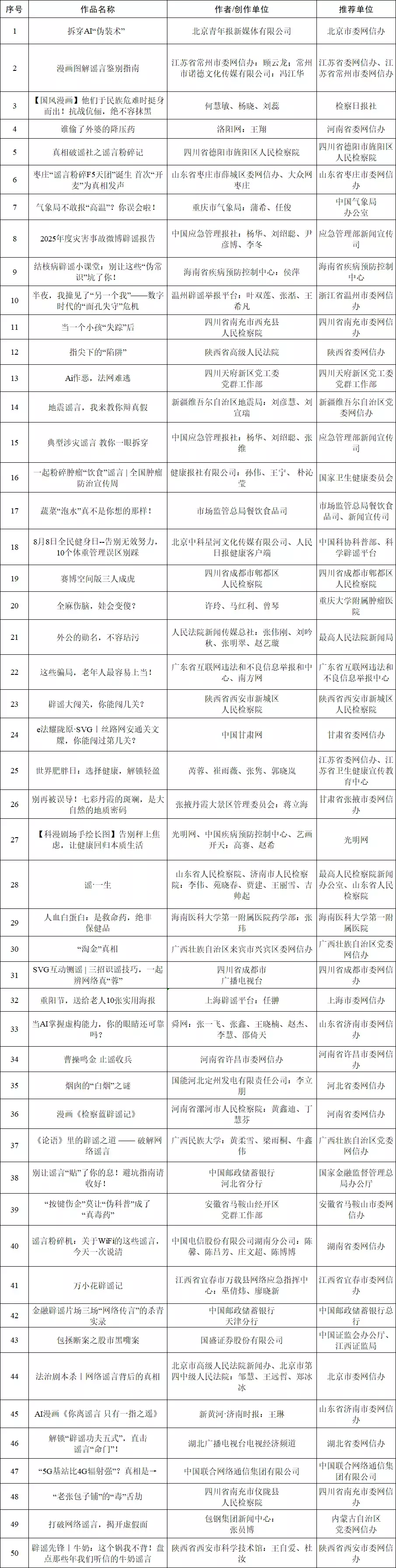 附:第八届互联网辟谣优秀作品征集展示活动入围复审作品名单