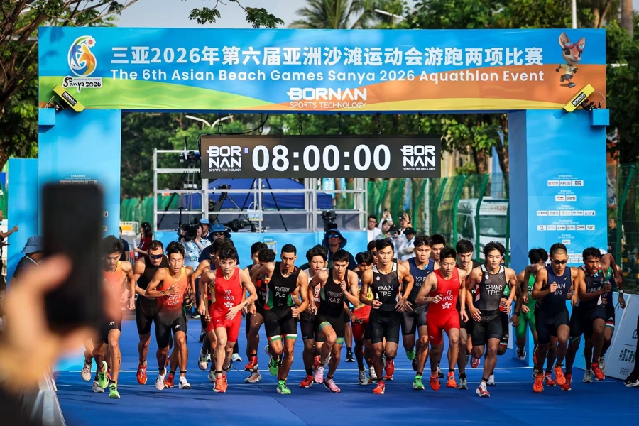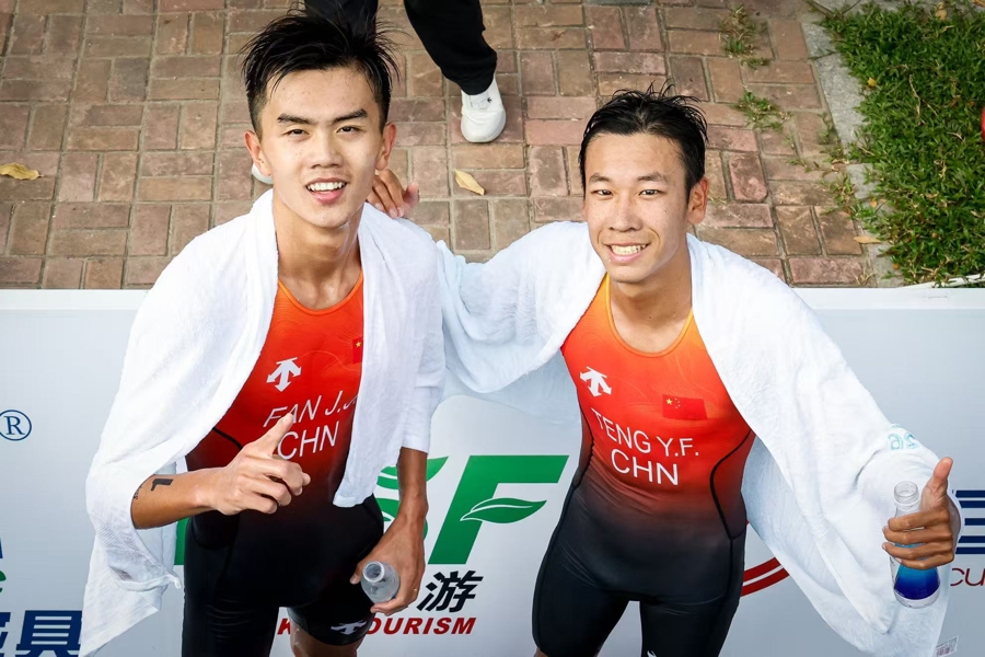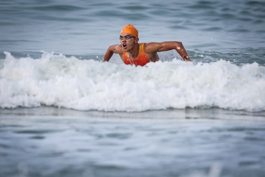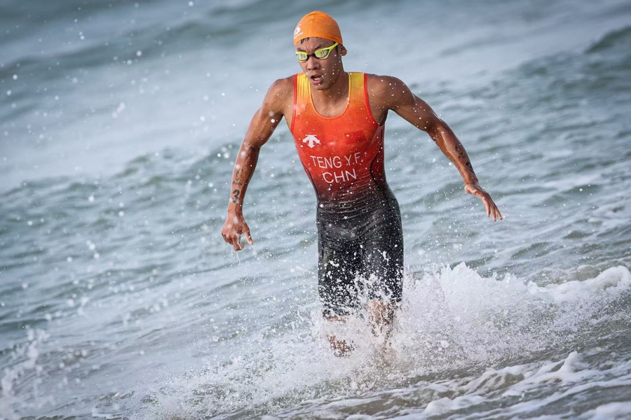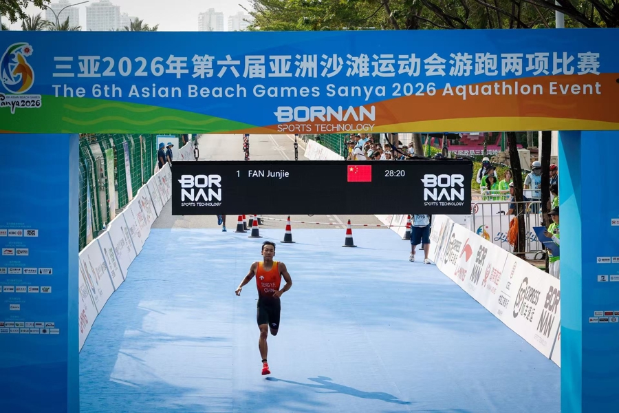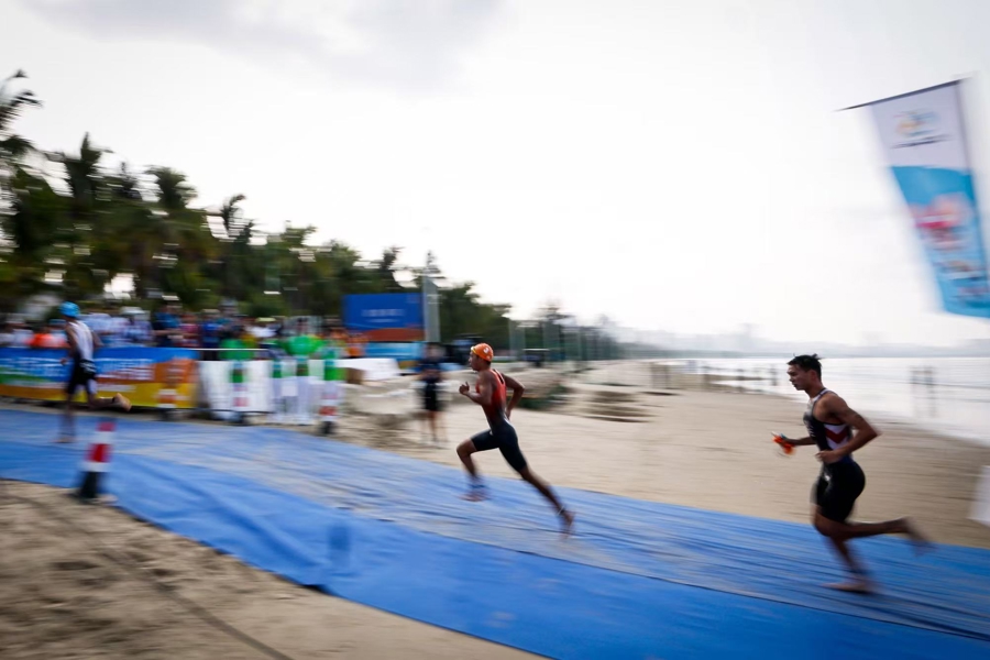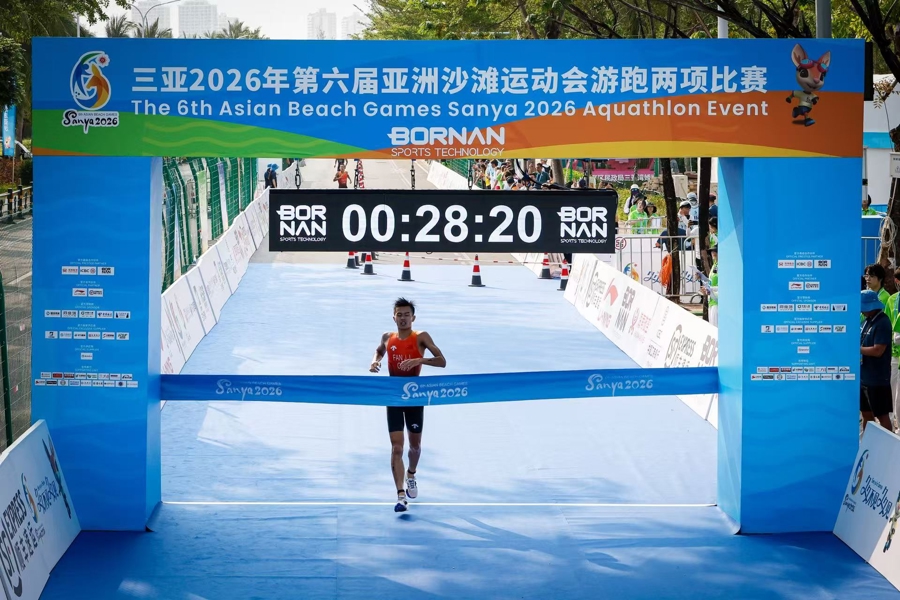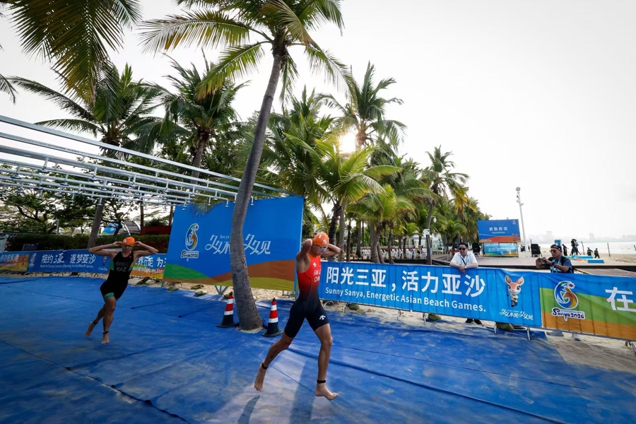 4月23日上午,第六届亚洲沙滩运动会首金在三亚湾摄影基地赛场正式诞生。在男子游跑两项个人赛中,中国选手范俊杰、滕云峰发挥出色,凭借强大的综合体能包揽该项目冠亚军,为中国代表团斩获本届赛事首枚金牌。