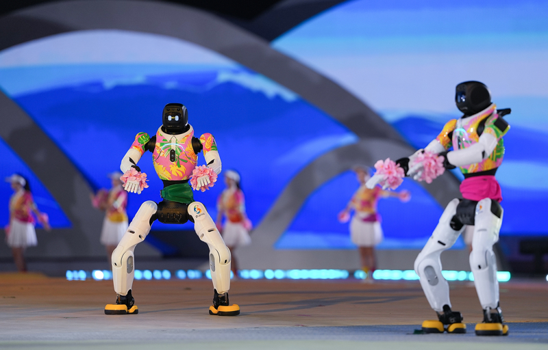 第六届亚洲沙滩运动会开幕式举行,穿花衣的机器人又来表演了