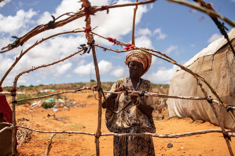 4月21日,在索马里基斯马尤郊区,流离失所者在搭建临时住所。 新华社/法新