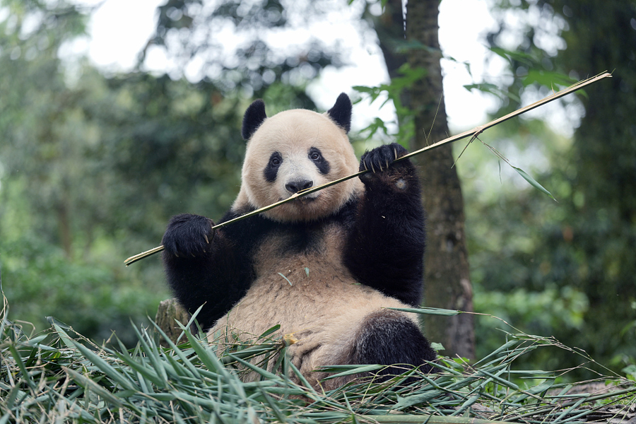 大熊猫“香香”在享用美食。